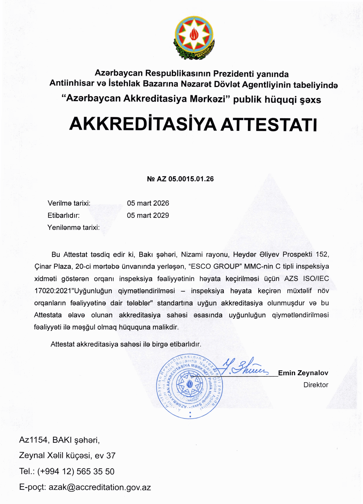 Chinar Plaza, Floor 20, 152 H.Aliyev avenue, AZ1029, Baku, Azerbaijan